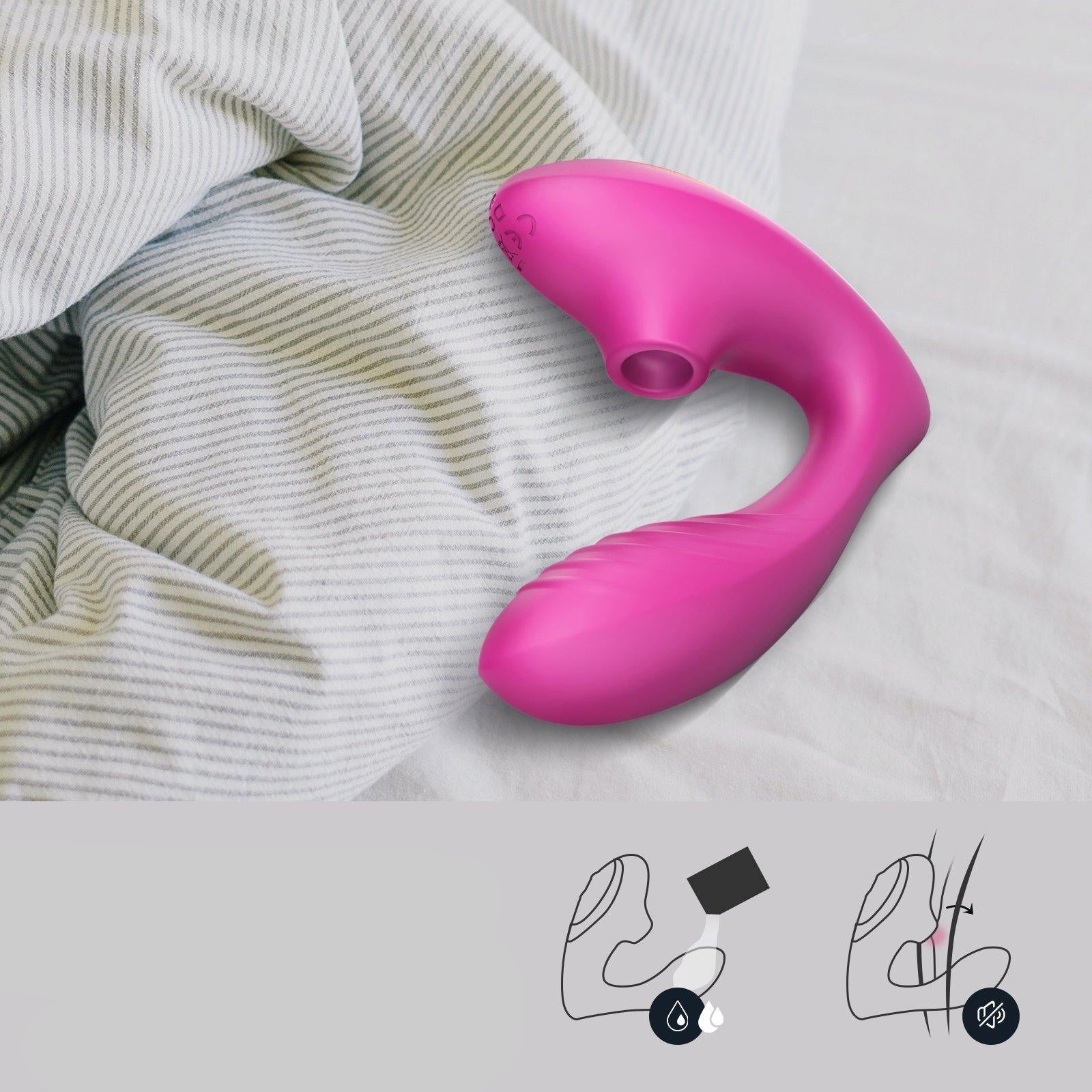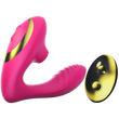 Vibrador sugador 2 em 1 com 10 modos de vibração e 10 modos de sucção, feito com silicone premium, flexível, silencioso, à prova d’água e com controle remoto (modelo PRO). Prazer completo com liberdade e conforto.