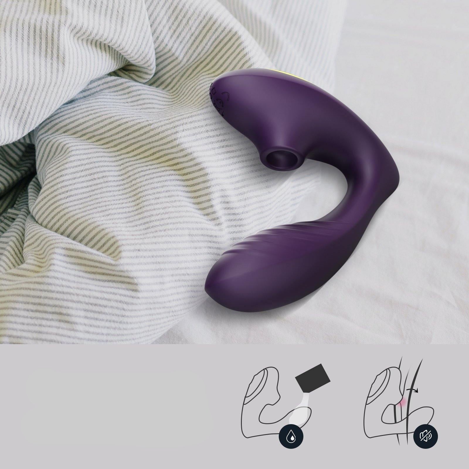 Vibrador Sugador com Controle – Estimulação Dupla, 10 Modos de Vibração e Sucção, Silicone Flexível e à Prova d’Água